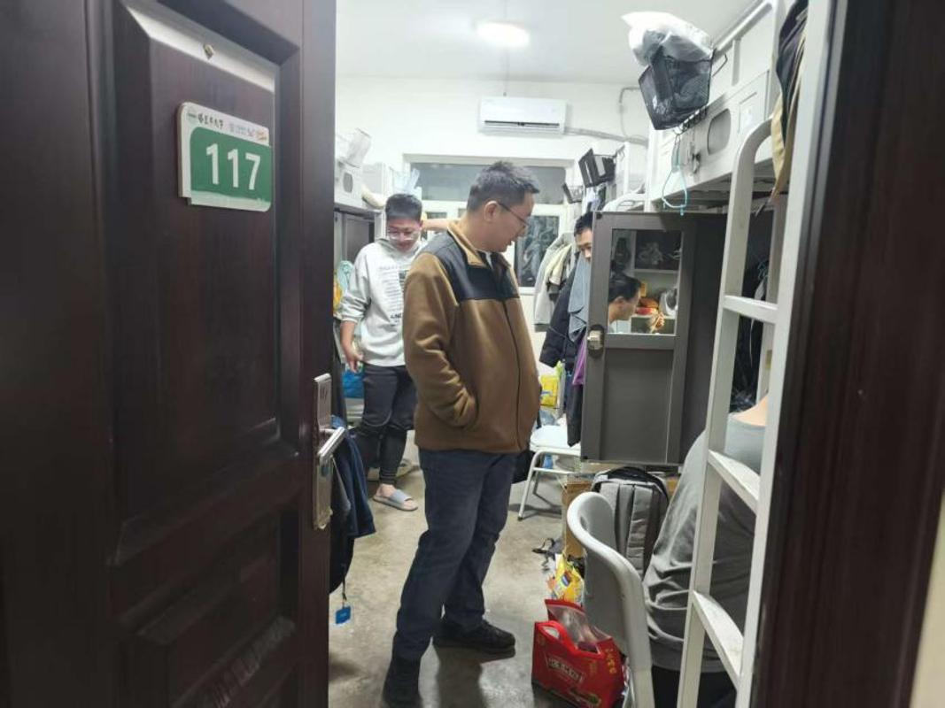 2025年12月11日晚,历史与哲学学院党委副书记常玉柱前往东七宿舍楼进行违规电器排查工作。