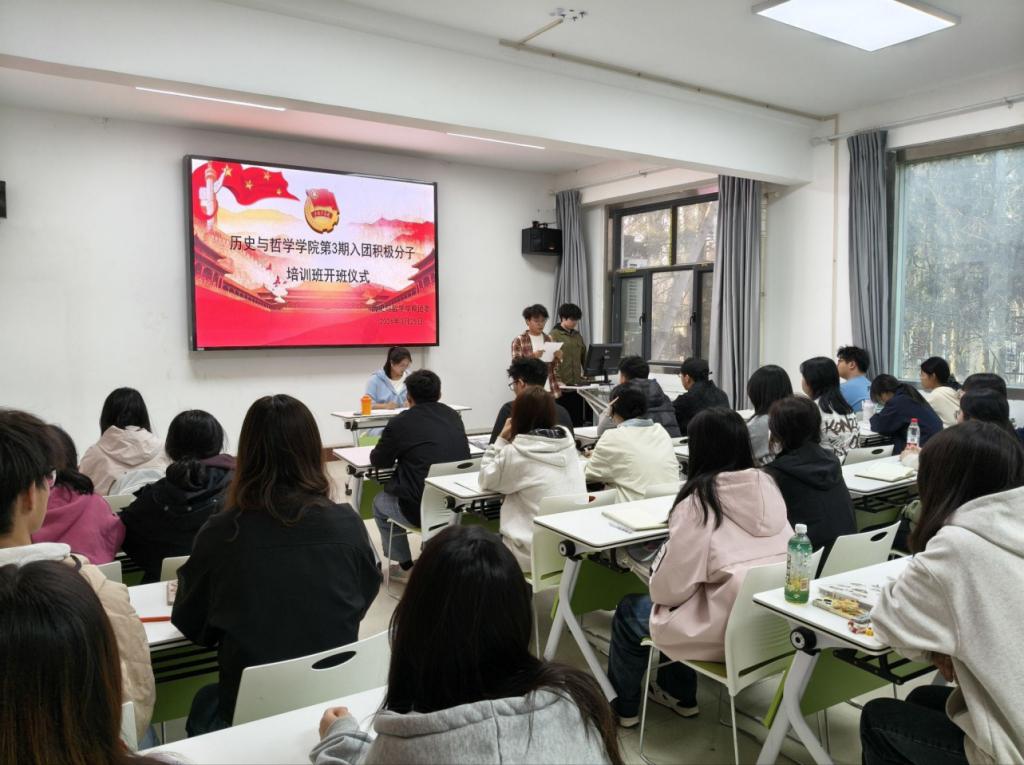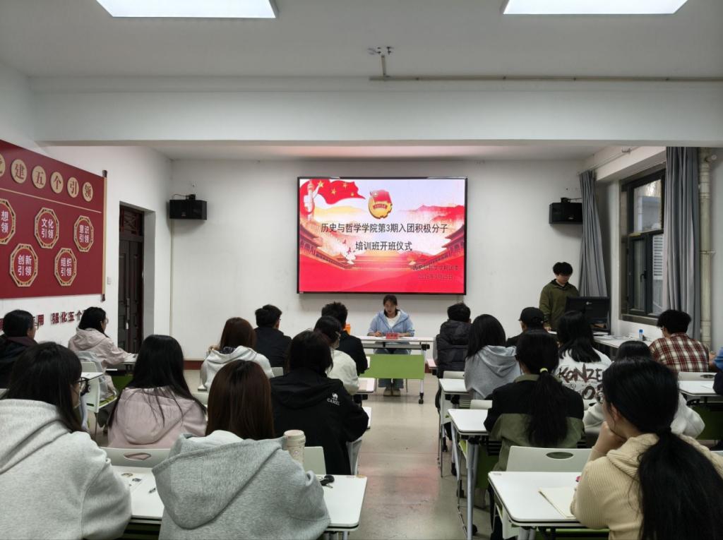 为切实加强青年学生思想政治教育,引导广大青年学生坚定理想信念,积极向团组织靠拢,3月25日,历史与哲学学院于党团活动室隆重举行第3期入团积极分子培训班开班仪式。本次仪式由学院团委书记狄云丽主持,全体入团积极分子参加。