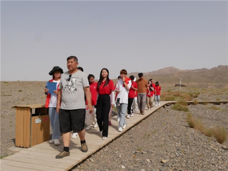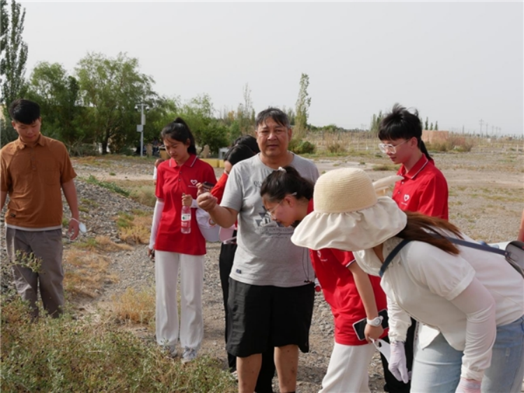 图为团队指导老师贾东为团队成员讲解遗址内的耐旱植物。中国青年网通讯员 王申奥 摄
