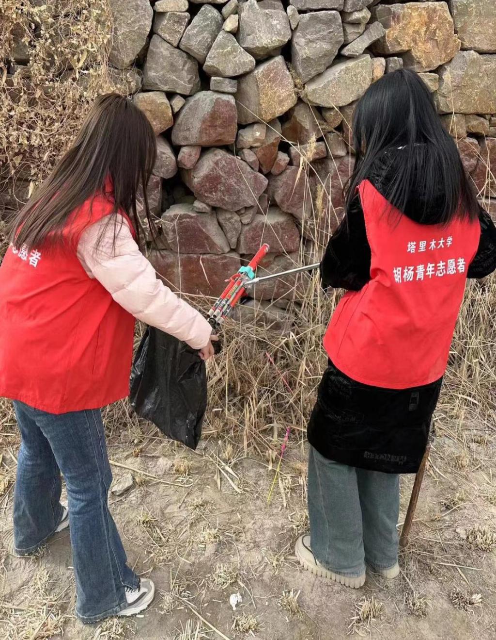 志愿活动开始前,负责人首先为全体志愿们说明注意事项。在组长们的带领下,志愿者们在塔里木河附近捡拾废弃纸屑并对一些隐藏在河岸草丛里的垃圾进行细致清理。他们分工明确、不辞辛劳,开展志愿活动期间还向路过的行人介绍河流保护的重要性。经过两个小时的工作,志愿者们圆满完成了本次志愿服务活动,度过了一个劳累但充实的下午。