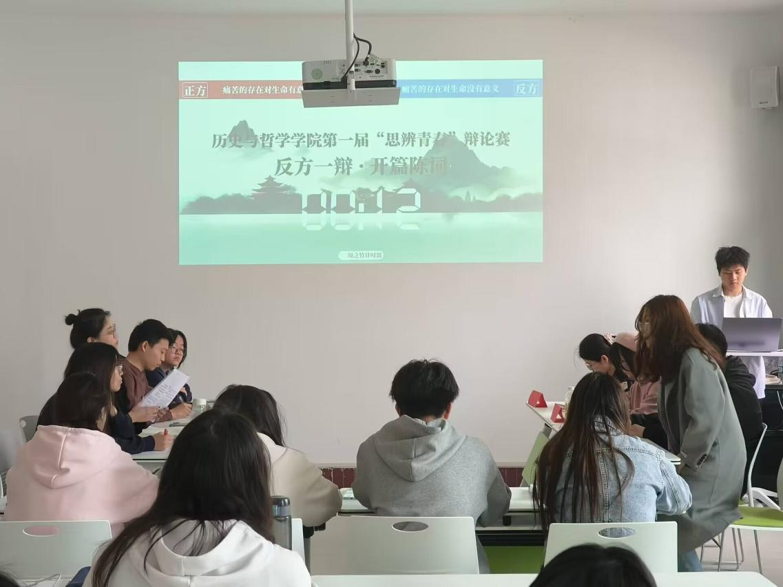 为提升同学们思辨能力和创造能力,激发同学们自主思考能力,营造浓厚的思辨氛围,充分展示当代大学生昂扬向上,敢于辩驳的青春风采。历史与哲学学院于3月18日上午在史哲院党团活动室举办第一届“思辨青春”辩论赛,赛程历时一个月,于4月12日正式结束。