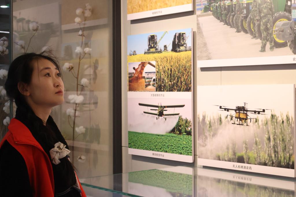 作为全国爱国主义教育基地,三五九旅屯垦纪念馆充分利用数字化技术,让历史“活”起来。馆内8大展区陈列了10万余件文物,并通过VR、AR、动态影像等技术,生动还原了“冰峰五姑娘”开凿乌库公路、军垦战士开荒造田等历史场景。在讲解员的讲解下,同学们深刻感受到兵团战士初到新疆时面临的艰难困苦,却以坚定的信念和顽强的毅力,创造了“戈壁变绿洲,荒漠成良田”的人间奇迹。