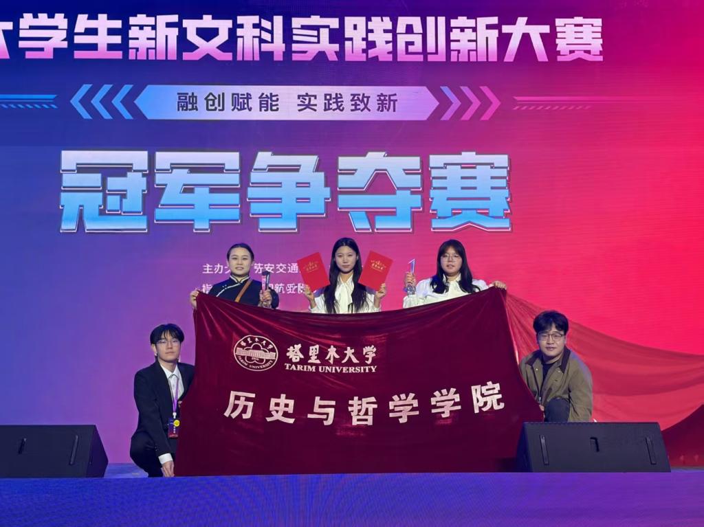 近日,2025大学生新文科实践创新大赛在陕西西安举办,塔里木大学历史与哲学学院参赛项目《灵境AI:多智能体协同Agent赋能博物馆数智化发展》与《文化传承视域下博物馆青少年研学活动的优化路径研究》在全国总决赛的激烈角逐中,一举斩获金奖2项,实现学院在该赛事的又一重大突破。历史与哲学学院教师黄瑞柳、秀梅、宋梅、熊江玲获优秀指导教师。